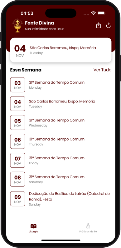 Liturgia diária, Bíblia completa, orações, terço, novenas e exame de consciência — tudo em um só lugar, para todos os momentos do seu dia.